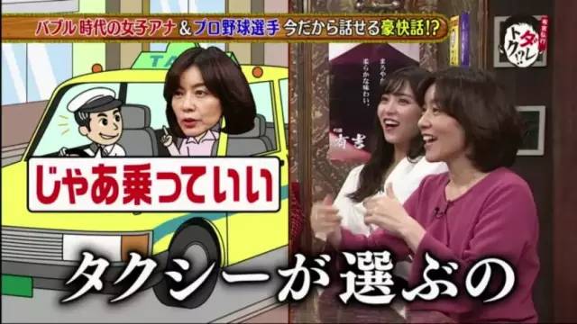 曾是富士电视台当家主持人的八木亚希子也补充说,当时计程车司机还会挑地方,觉得能赚才肯开过去。
