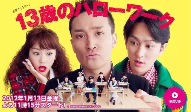 TOKIO松冈昌宏主演的《13岁的Hello Work 》,则是由他饰演小警察小暮铁平,在睡梦中穿越过去,遇见了13岁时,正处于泡沫经济末尾的自己(田中伟登 饰)。 为了重写自己的命运,由过去影响未来,他混进了小铁平的补习班学校当老师,誓要帮小铁平实现梦想。